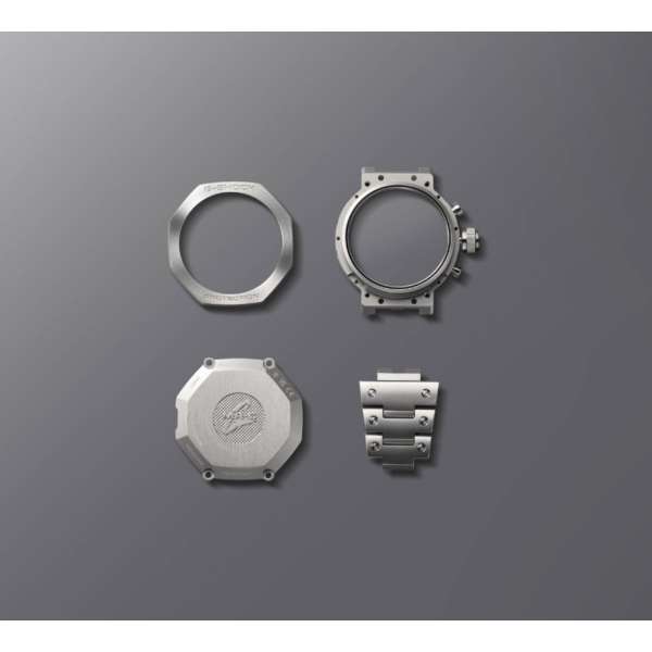 The bezel top is made of COBARION*1, which is approximately four times harder than pure titanium and is said to have a luster equivalent to platinum, and the band is made of DAT55G*2, a titanium alloy with high hardness and excellent workability.