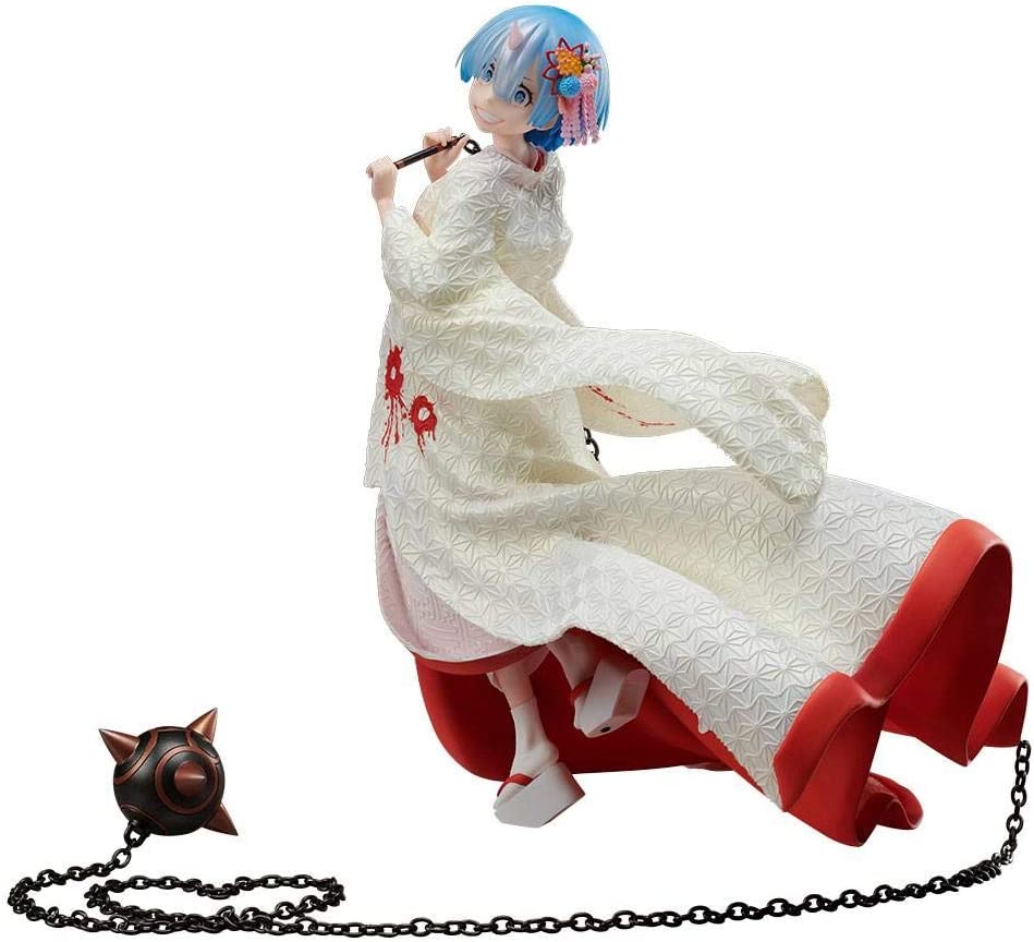 DetailsSculptor: Design COCOPaintwork: HinokiyaHere comes the Oni version of the popular "Rem -Shiromuku- 1/7 scale Figure" with its elegant wedding costume!The beautiful Shiromuku now has a bright red peony design on it and Rem wielding a morningstar is extremely "Oni cute"!The delicate pattern of the white costume has been expressed by the sculpting and the pale yellow and red layers have a pearl coating.The slightly transparent bangs are recreated using clear materials. In addition, an optional cotton hat is included!It includes 2 face parts, one is the normal Oni face and the other is the alternative face part with the dimly gleaming eyes behind the bangs.Be sure to add the Oni cutest "Oni Bride" to your collection!