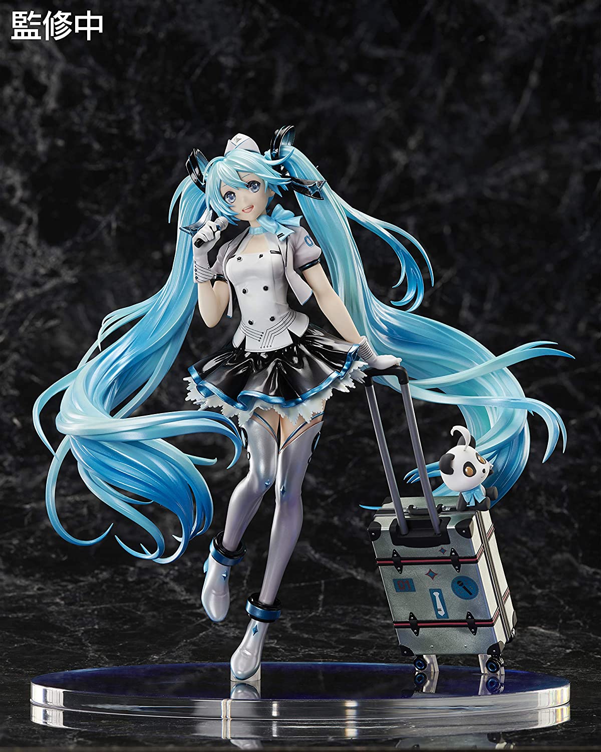 The other items such as the panda, suitcase, and microphone are also sculpted with care, while the base is designed in the image of earth to match the illustration.