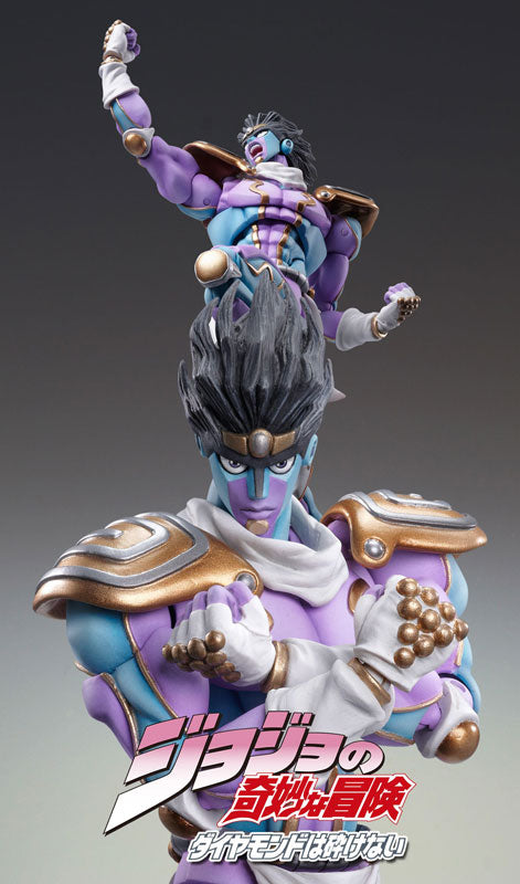 DetailsSculpture producer: Takumi KoboSculptor: PROGRESSSuper Action Statue of Star Platinum is getting a rerelease!Star Platinum comes colored in purple and blue based color different from Part.III version.Set includes 8 types of hand parts and alternative parts to recreate scenes.