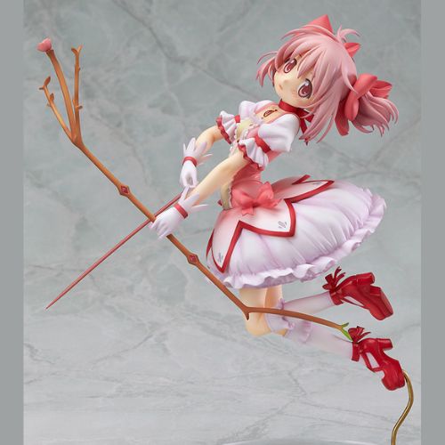 From the movies released in 2012, 'Puella Magi Madoka Magica The Movie: The Beginning Story / The Everlasting' comes a scale figure of Kaname Madoka in her Puella Magi outfit. The figure is a complete rendition of the key visual for the movie, originally illustrated by character designer Ume Aoki. The sculpting work is by Hiroshi (Sakurazensen), the same sculptor who brought you the 1/8th scale Ultimate Madoka. It's a figure filled with amazing detail for fans to enjoy.