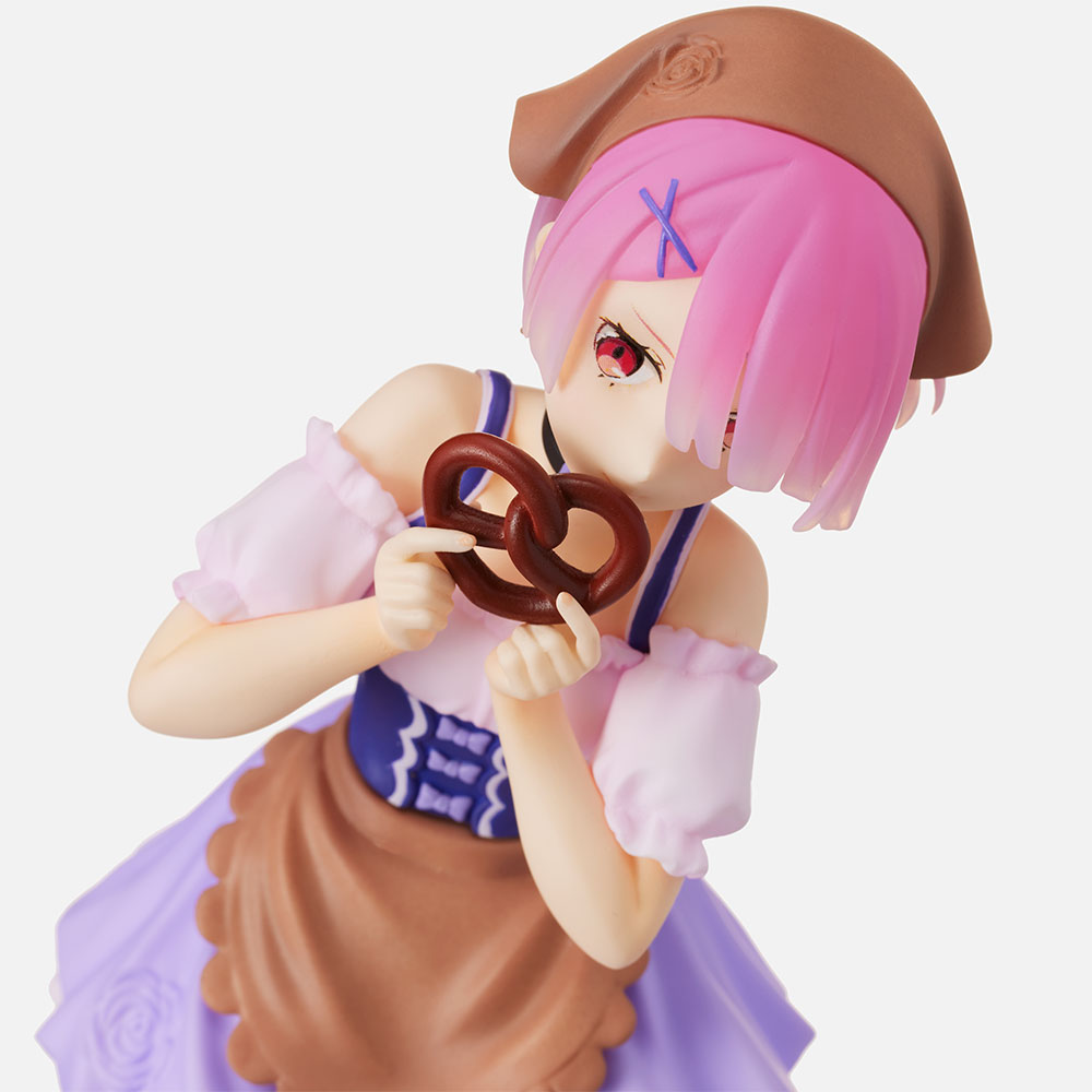 DetailsFrom "Re:Zero - Starting Life in Another World" comes a super premium figure of "Ram" dressed in a dirndl outfit! She is posed holding a pretzel in a cute pose!
