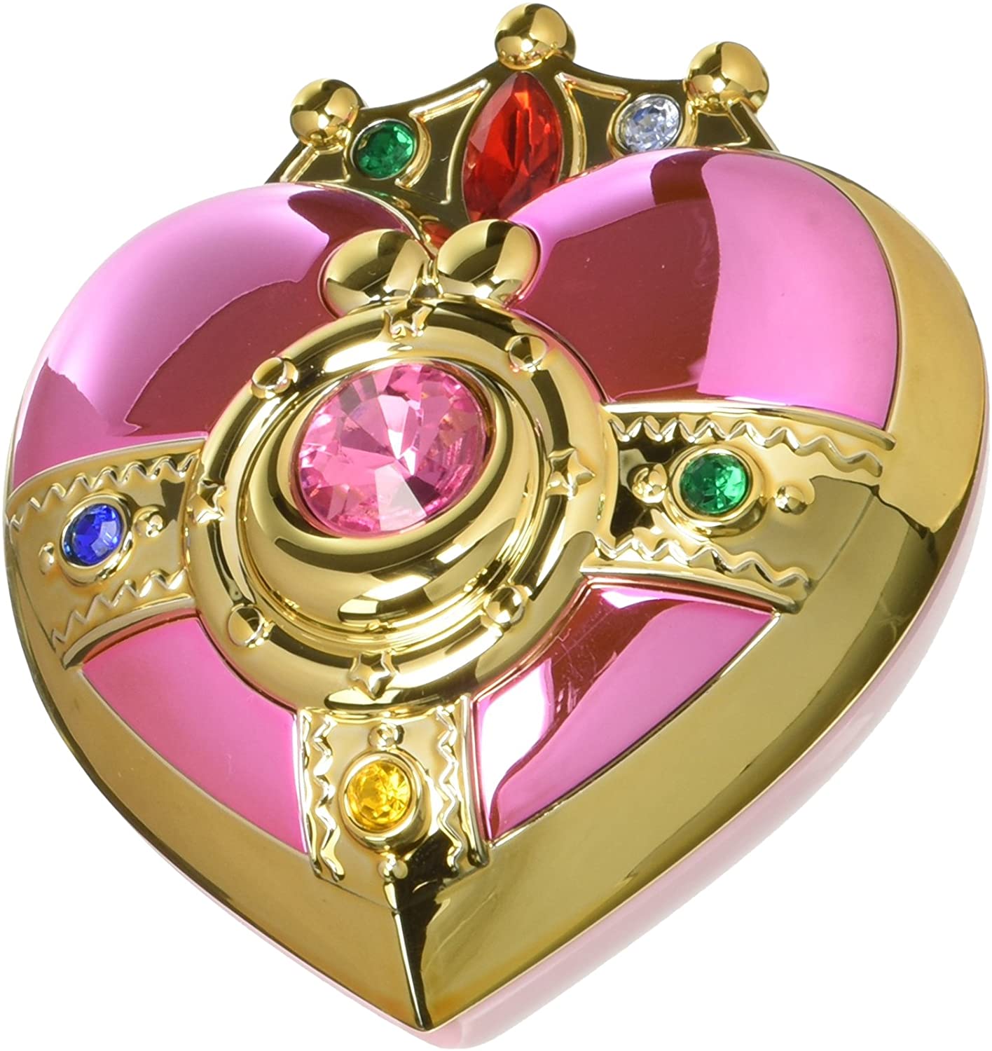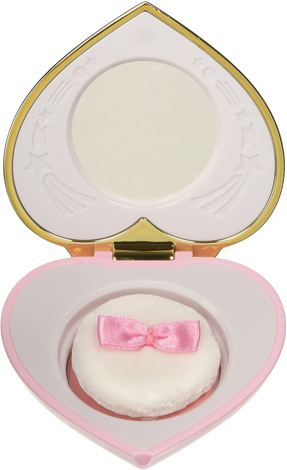 DetailsThe Sailor Moon make-up item your must have. As it appears in the TV anime "Sailor Moon", the Cosmic Heart Compact has pink gold glitters and it`s decorated with 7 stones. The blush powder is in pink color, perfectl for a natural make-up. The set includes blush and powder puff, All Organic Ingredients.